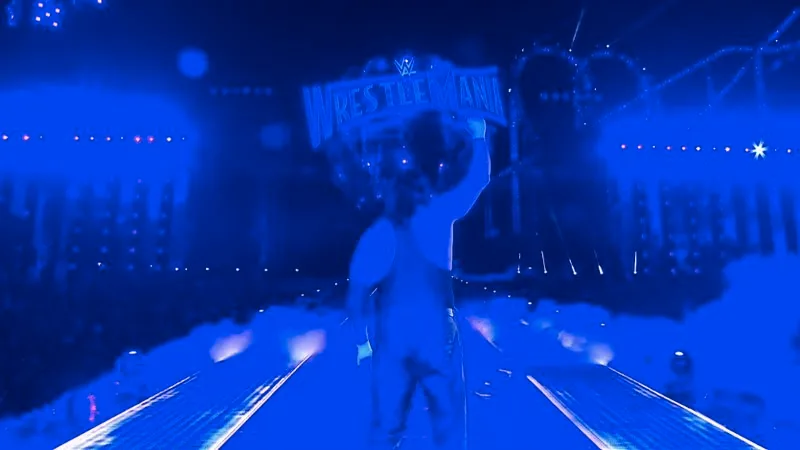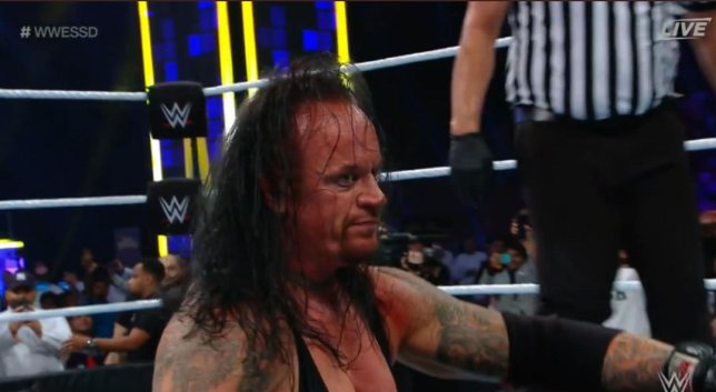 Undertaker gets up in his old gear, and removes his hat, his coat and his gloves, leaving them in the ring. As he walks up the ramp, he turns back, one last time, at an exhausted crowd roaring for him, as he sinks into the entrance ramp with a tear in his eye.