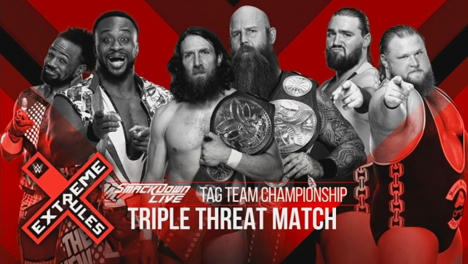 Daniel Bryan & Erick Rowan (c) vs The New Day vs Heavy Machinery
