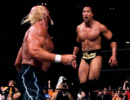 - The Rock implores Hogan to take the spotlight and do his posedown here.